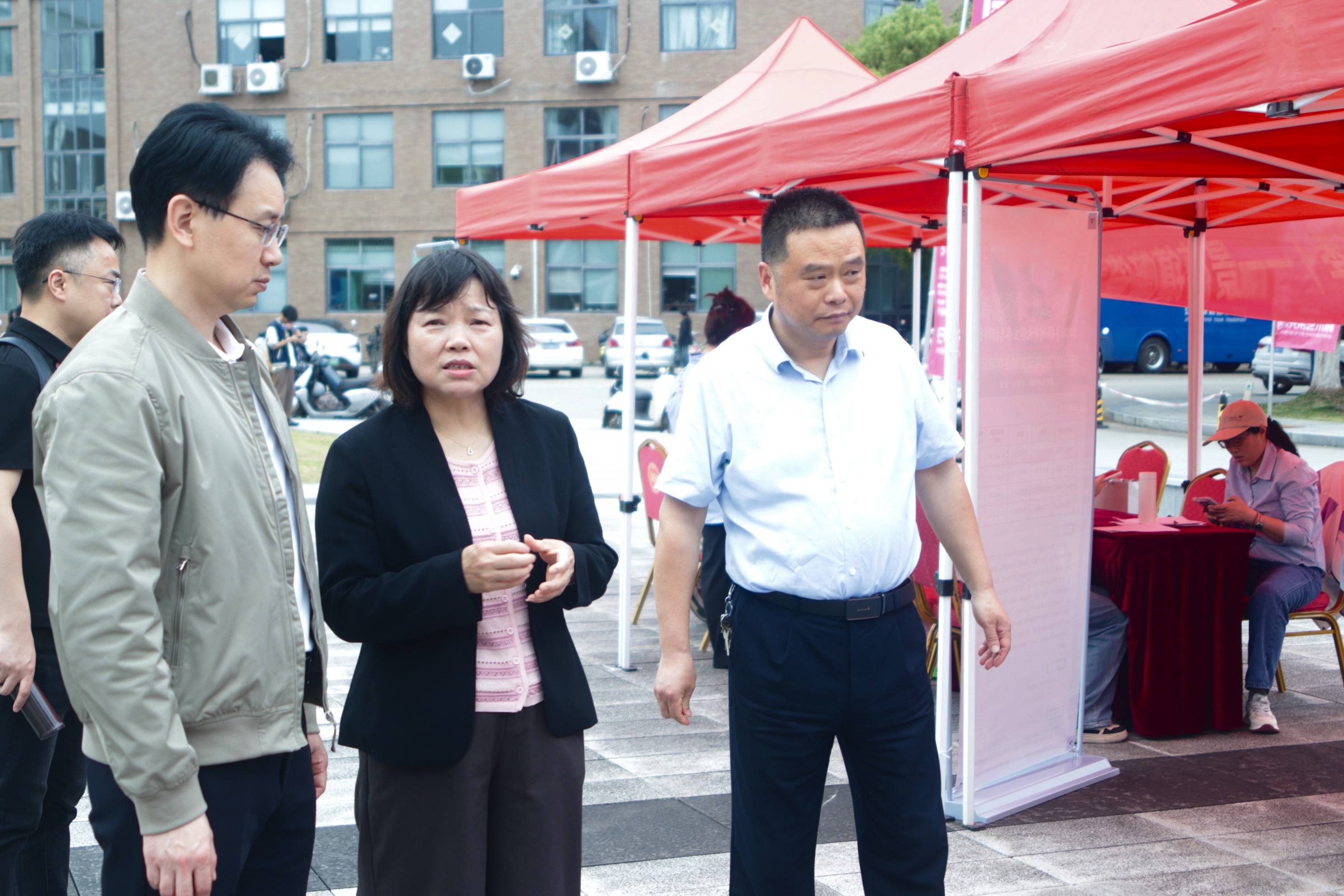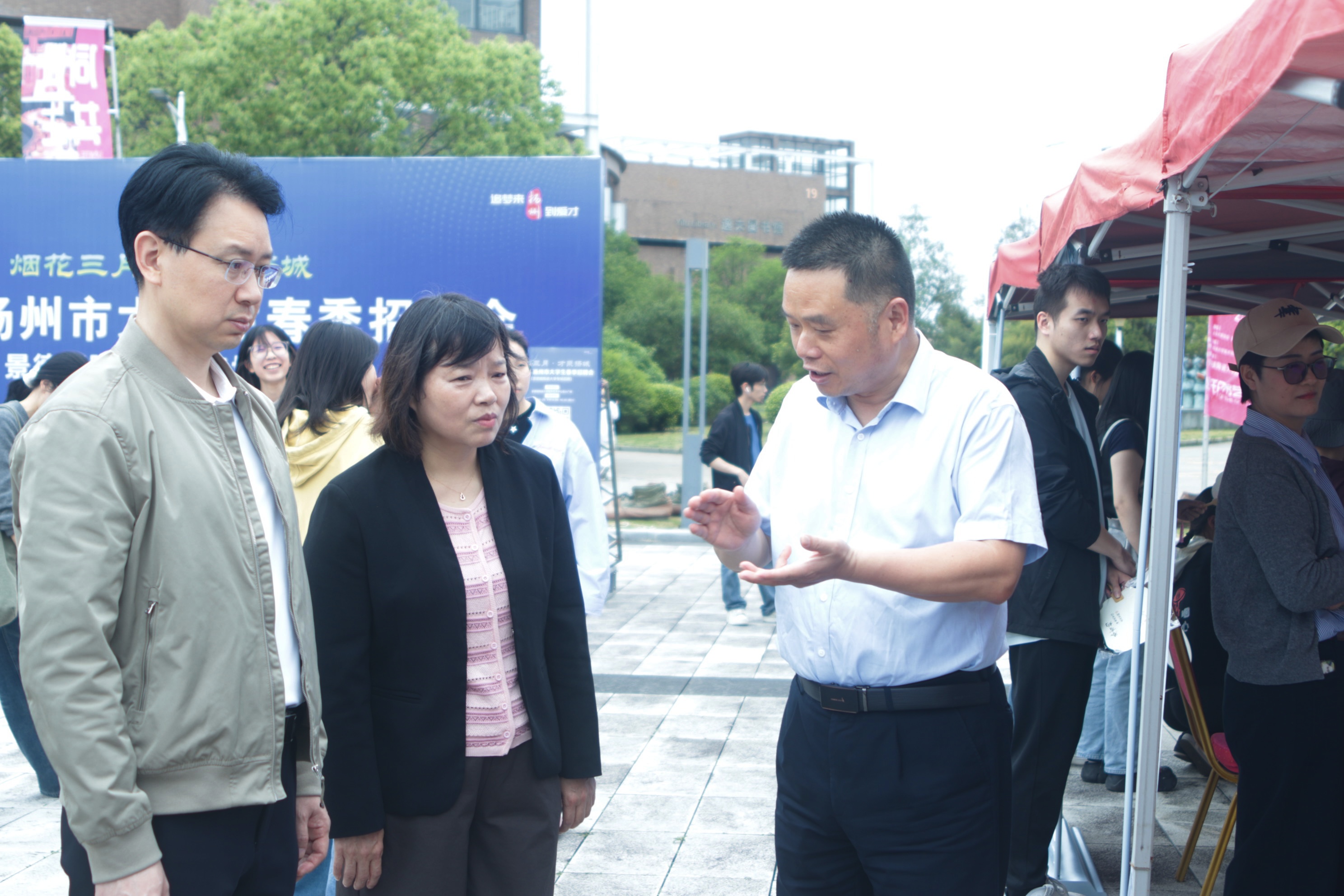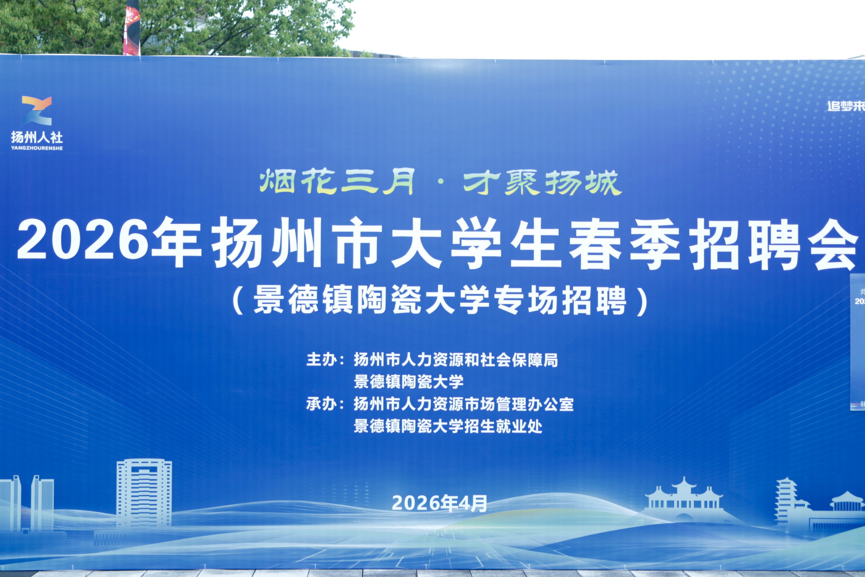 本网讯(文/李明明 方琴 图/包心恬 吴夕然)为深化校地人才互通融合,助力学子高质量就业,4月25日,由扬州市人力资源和社会保障局主办,景德镇陶瓷大学承办的“烟花三月 才聚扬州”——2026年扬州市春季校园招聘会在我校湘湖校区举行。校党委常委、副校长胡银娇深入现场指导工作。