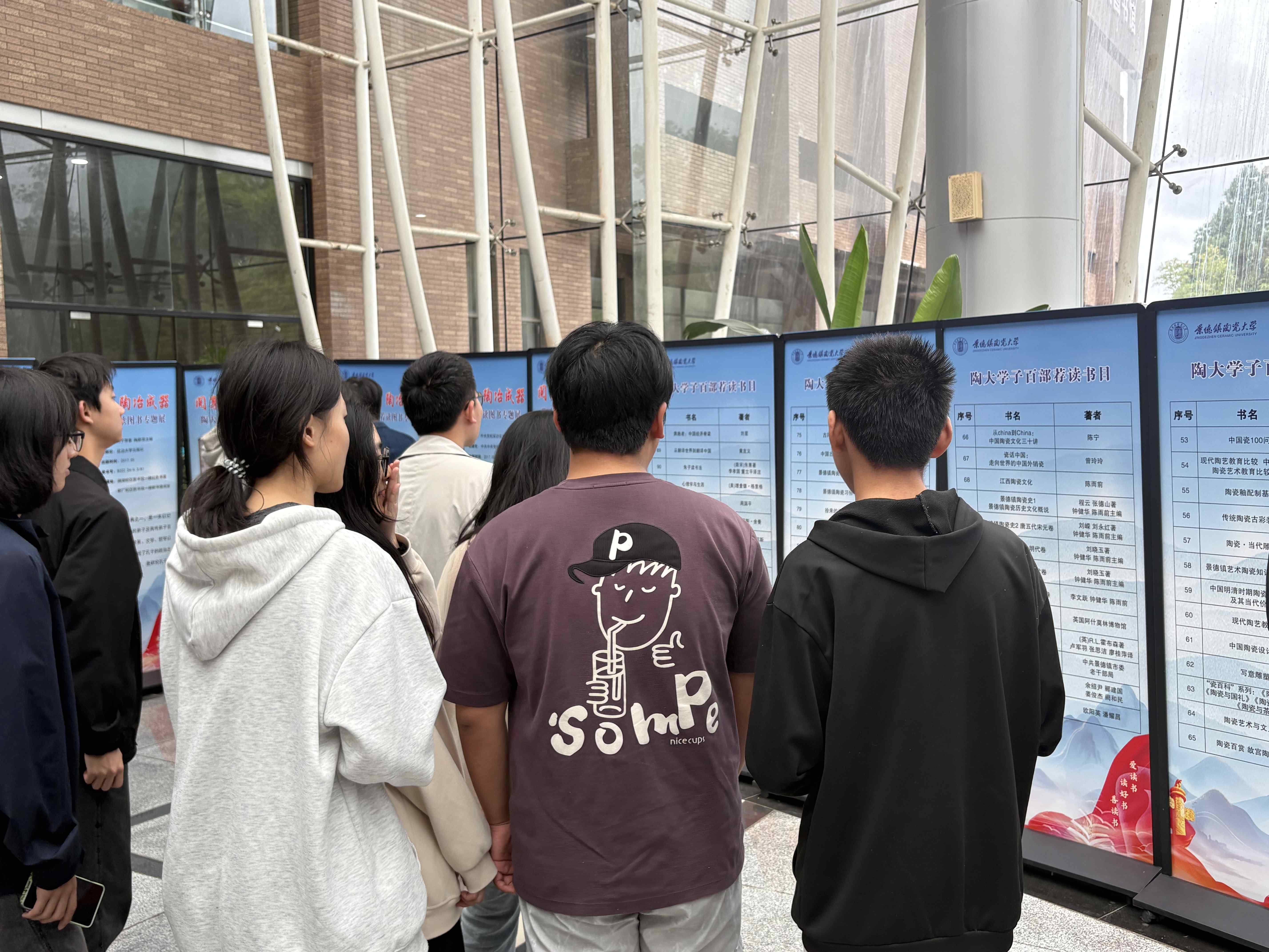 据悉,本次专题展展出的百部图书由学校相关部门及学院重点推荐与精心遴选,内容涵盖政治理论、中华优秀传统文化、红色文化、陶瓷文化与艺术、经典文学等多个领域,兼具思想性、知识性和可读性,能够满足师生多元化、高品质的阅读需求。书展现场,师生或驻足纸本图书展示区阅读,或通过瀑布流和歌德电子书借阅机阅读电子图书,切实感受文字力量与阅读之美。