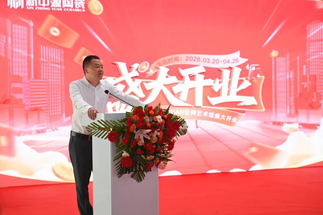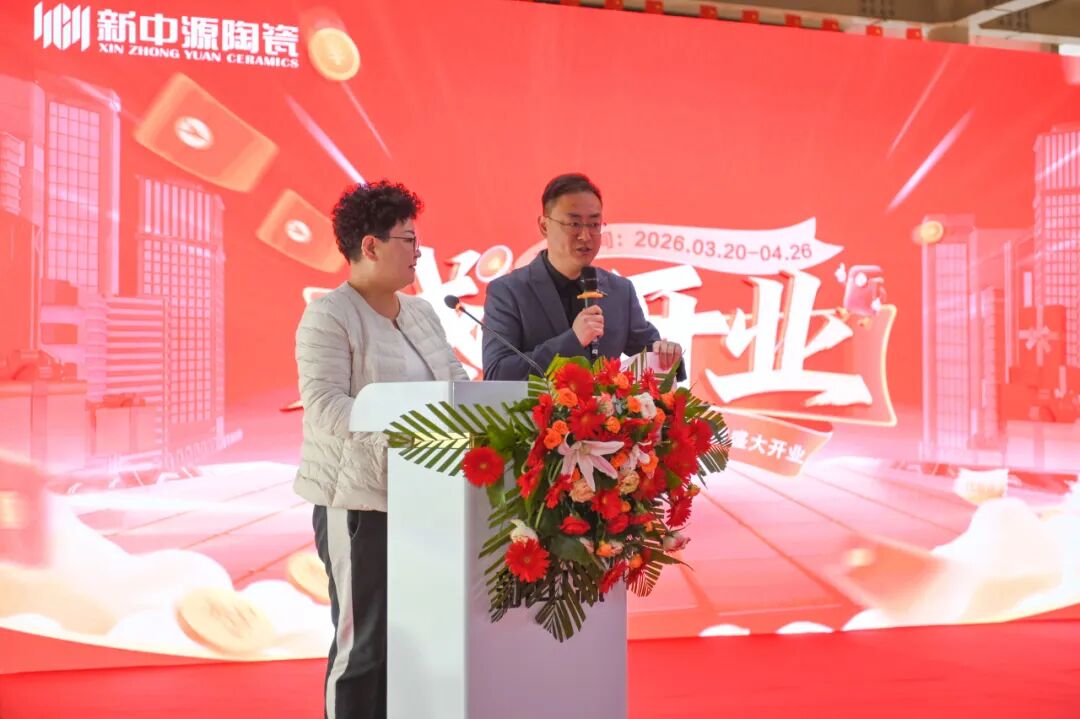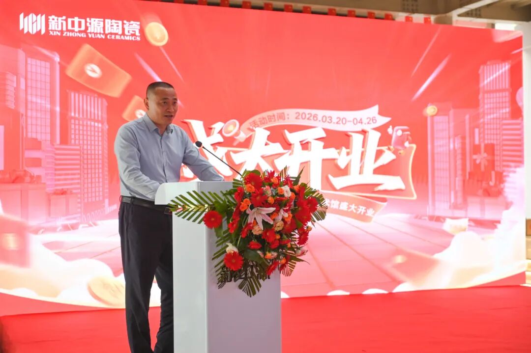 新中源陶瓷华北大区总经理刘记垚登台致辞,立足品牌航母实力布局济宁市场新战略,坚守品质初心带来更高标准建陶产品,全力赋能终端助力门店跨越式发展。