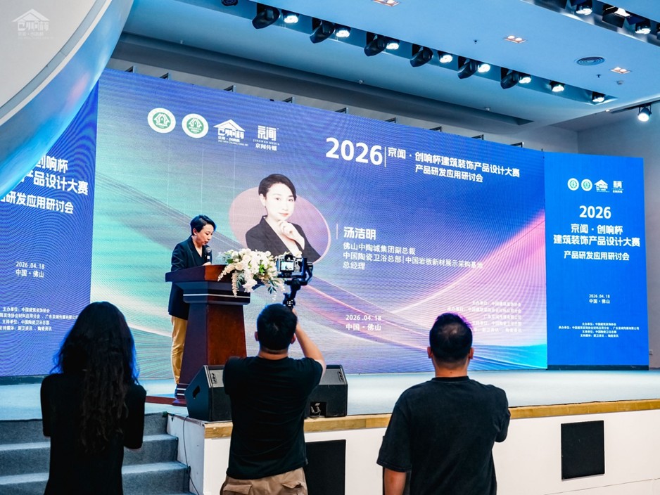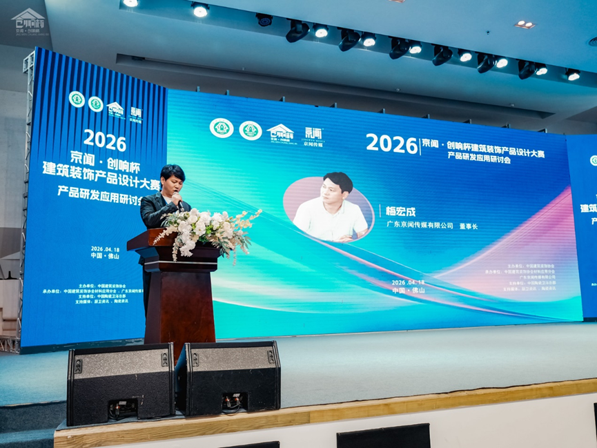 4月18日,由中国建筑装饰协会主办,中国建筑装饰协会材料应用分会、广东京闻传媒有限公司联合承办,中国陶瓷卫浴总部协办、陶瓷资讯、厨卫资讯提供媒体支持的2026京闻·创响杯建筑装饰产品设计大赛—产品研发应用研讨会在佛山中国陶瓷卫浴总部基地圆满举行。本次活动以“材料创新、设计赋能、低碳发展”为核心主题,汇聚行业领导、院校老师、知名设计师及品牌企业代表,共同探讨建筑装饰产业高质量发展新路径,并现场颁发2025年度创响杯大赛获奖企业奖金。