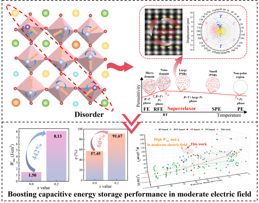 图1通过高熵超弛豫态工程实现中等电场下储能性能的提升