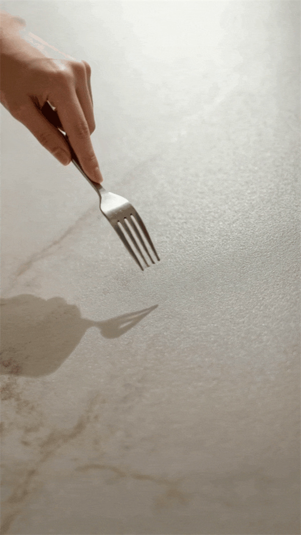 工艺层面,玛缇贝壳釉 2.0 搭载专属贝壳釉工艺,打造15° 标准哑光光感,纯正哑光属性定位鲜明。釉面光线漫反射均匀温润,既规避亮面砖强光直射的刺眼感,又弥补普通哑光砖暗沉压抑的视觉短板;搭配精细干粒表层工艺,触感细腻亲肤,加上高致密釉层结构,从根源改善传统哑光素色砖易藏污、难清洁的使用痛点,实现美学质感与居家实用双向兼顾。