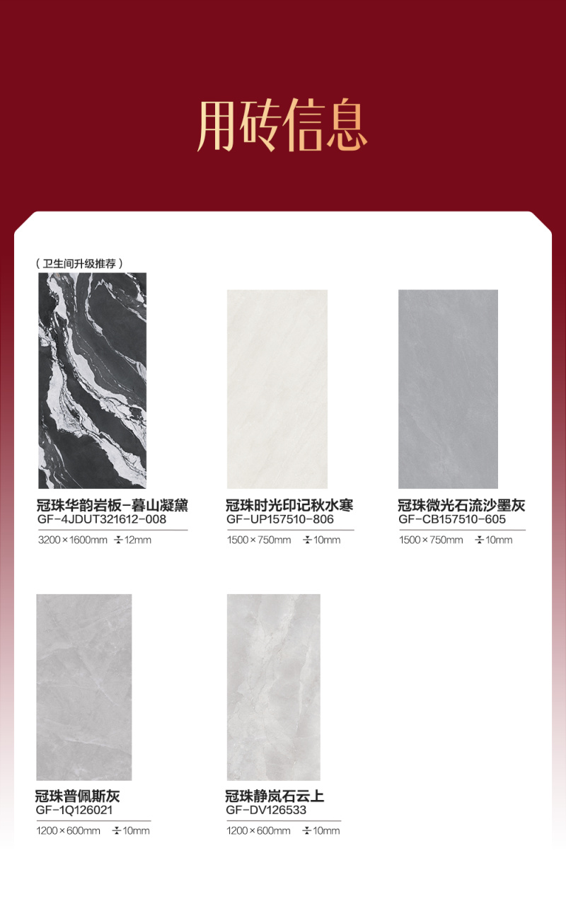 未来,冠珠瓷砖将持续深耕墙地台全案应用领域,精进产品与解决方案,以更优质的品质、更具温度的设计,赋能更多高品质空间,让每一处场景都实现性能与美学的和谐共生。
