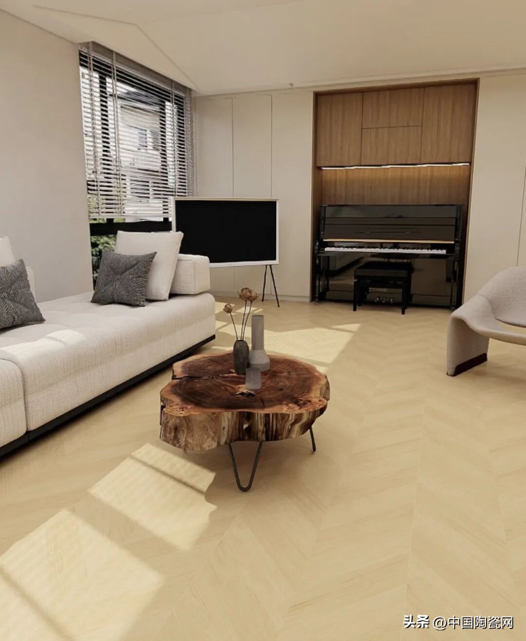 **工艺:数码釉+8°柔光**,纹理清晰分明,8度光泽如自然木材,不反光、不冰冷。