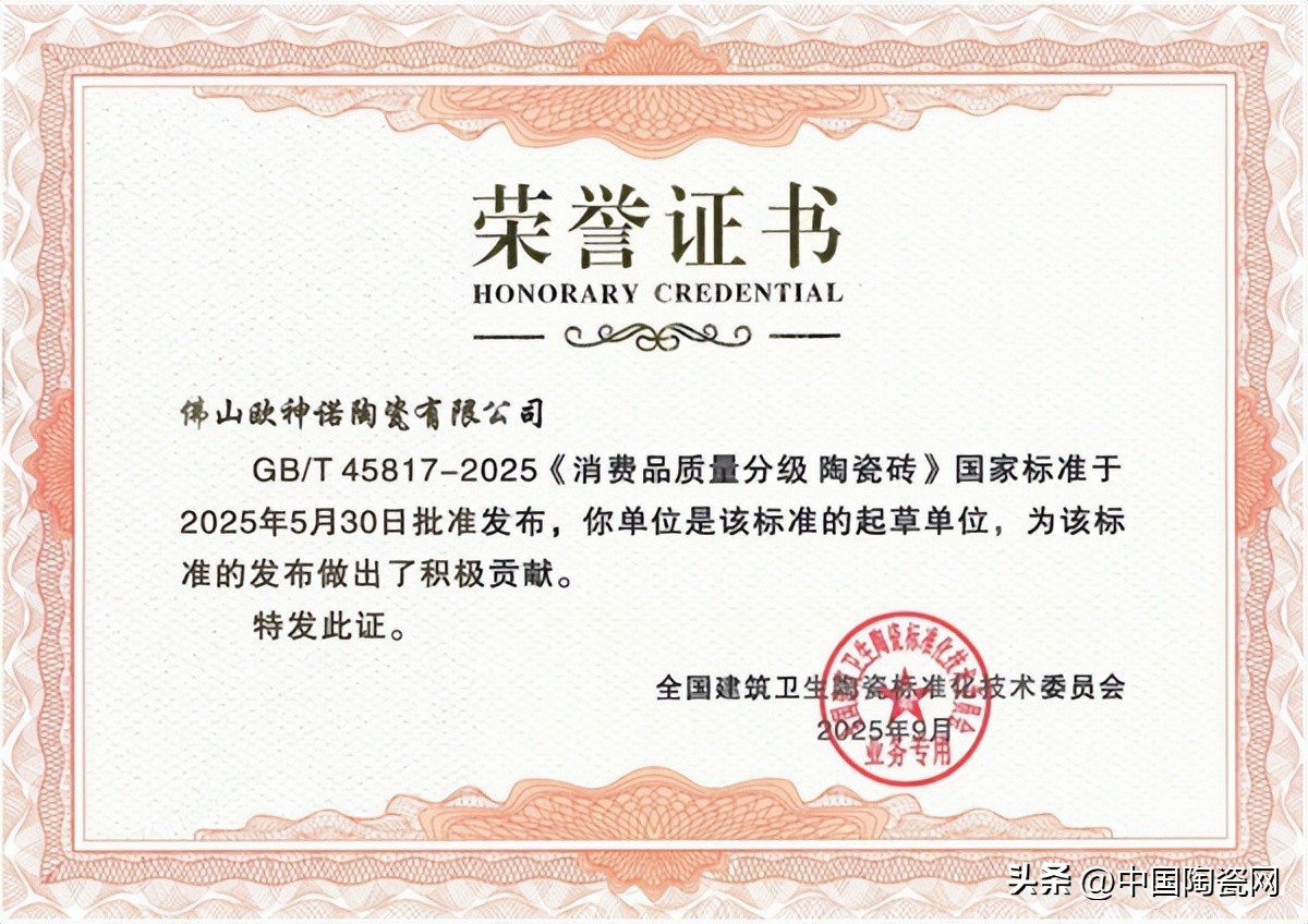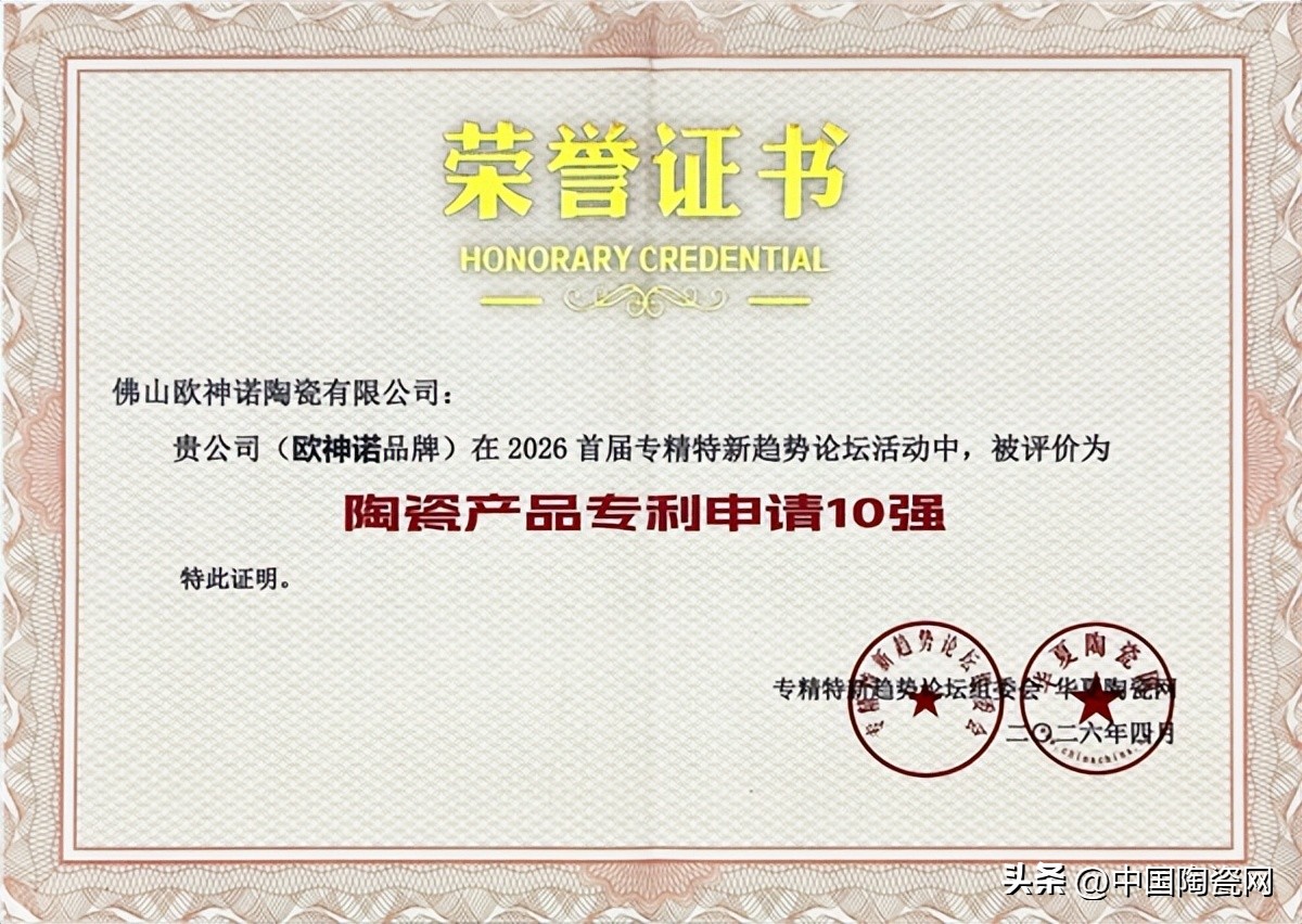 截至2026年1月,欧神诺累计参与起草9项国家标准、38项行业标准,拥有423项有效专利,其中发明专利占比超50%。行业公认的7大里程碑技术突破中,5项诞生于欧神诺。28年技术坚守,使其成为高端家装的可靠选择,持续引领行业高质量发展。