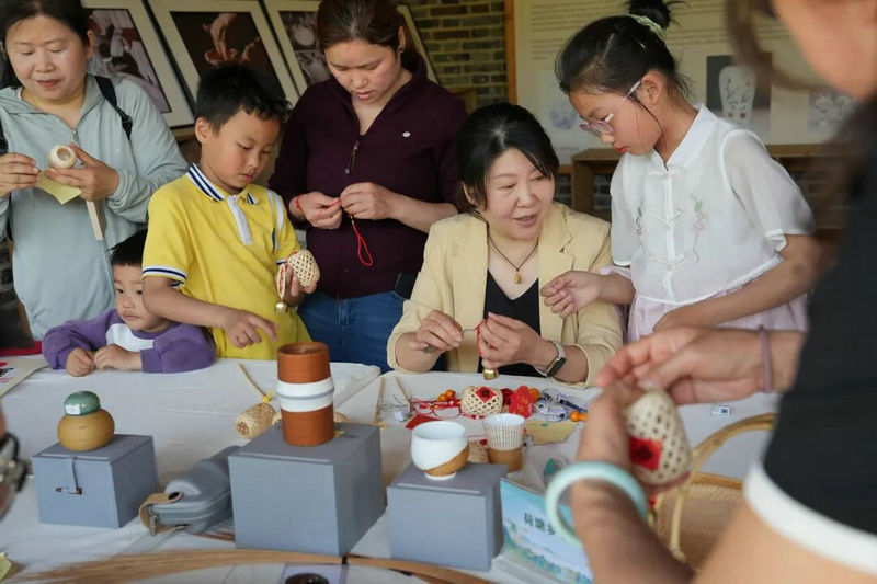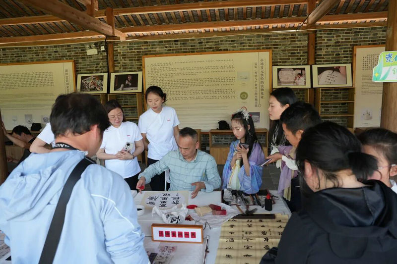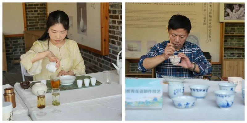 与此同时,现场还特设非遗展演与教学互动体验区,六大非遗项目集中亮相,并特别邀请省、市级非遗代表性传承人亲临演绎与指导,让市民游客得以近距离触摸传统技艺的温度:青花瓷绘制的神来之笔、雕塑瓷泥塑技法的巧夺天工、剪纸艺术的精妙绝伦、传统书法展示与谷雨诗词的现场书写、荷塘乡手工竹编的匠心独运、浮梁工夫红茶制作技艺的醇香四溢。