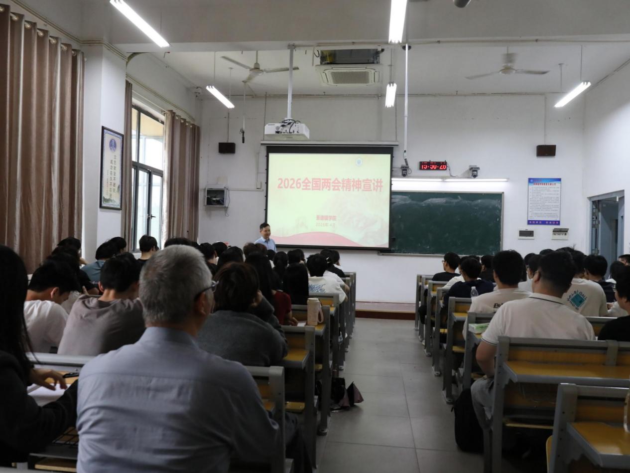 没有生硬的理论宣讲,熊震宇校长以“青年成长与时代同行”为切入点,用通俗易懂的语言、鲜活生动的案例,系统解读了2026年全国两会的核心要义,重点围绕新质生产力、教育科技人才一体化发展、青年就业保障等与大学生息息相关的热点话题,结合“十五五”规划纲要中关于科技创新与人才培养的部署,为同学们搭建起“国家发展”与“个人成长”的桥梁,让大家深刻认识到青年一代在国家发展大局中的重要使命。
