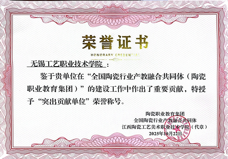 本次大会以“产教共生・数智焕新:构建陶瓷高质量发展人才引擎”为主题,汇聚政、校、行、企、研多方代表共话陶瓷行业人才培养与产教融合创新发展。会上,全国陶瓷行业产教融合共同体对在陶瓷职业教育与产教融合领域成效显著的单位进行表彰。我校凭借在陶瓷类专业建设、人才培养模式创新、校企协同育人等方面的突出贡献,被授予“突出贡献单位”荣誉称号。