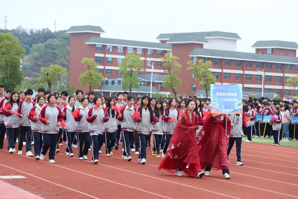 此外,对口升学教研室、机电教研室、信息与管理教研室、陶瓷技术教研室各年级代表队及裁判员代表队依次亮相,他们精神抖擞、口号响亮,部分队伍还带来特色表演,充分展现了陶瓷技术学院学子的青春活力与团结精神。