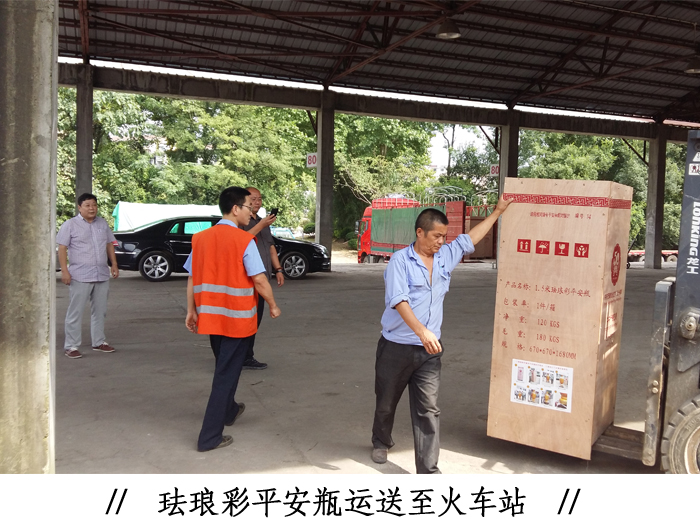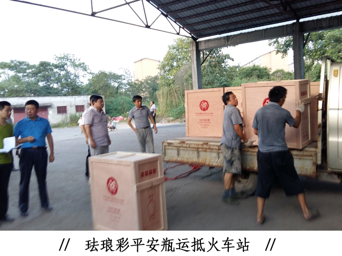为保证珐琅彩平安瓶顺利生产和启运,景德镇市政府于7月30日专门召开会议研究和部署生产和运输过程安全保障和保密工作。在景德镇市政府的严密安排下,沿路干警的守护下,8月30日,20对大号珐琅彩平安瓶和160对小号珐琅彩平安瓶如期抵运拉萨,并在接下来几天运送至大昭寺、色拉寺等百余座和谐模范寺庙。