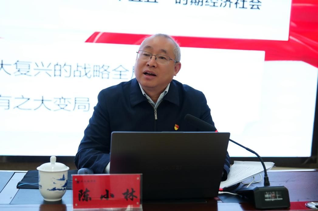 课上,陈小林与学生积极互动,希望青年大学生们以全会精神为指引,树立远大理想、锤炼过硬本领,在推进中国式现代化的伟大实践中书写青春华章。