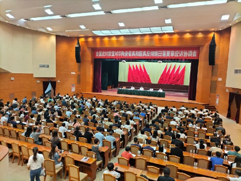 日上午,全国应对欧盟对华陶瓷餐具和厨具反倾销日落复审应诉协调会在潮州市党政机关会堂召开。来自全国各地陶瓷产区的企业代表和相关协会、商会负责人近