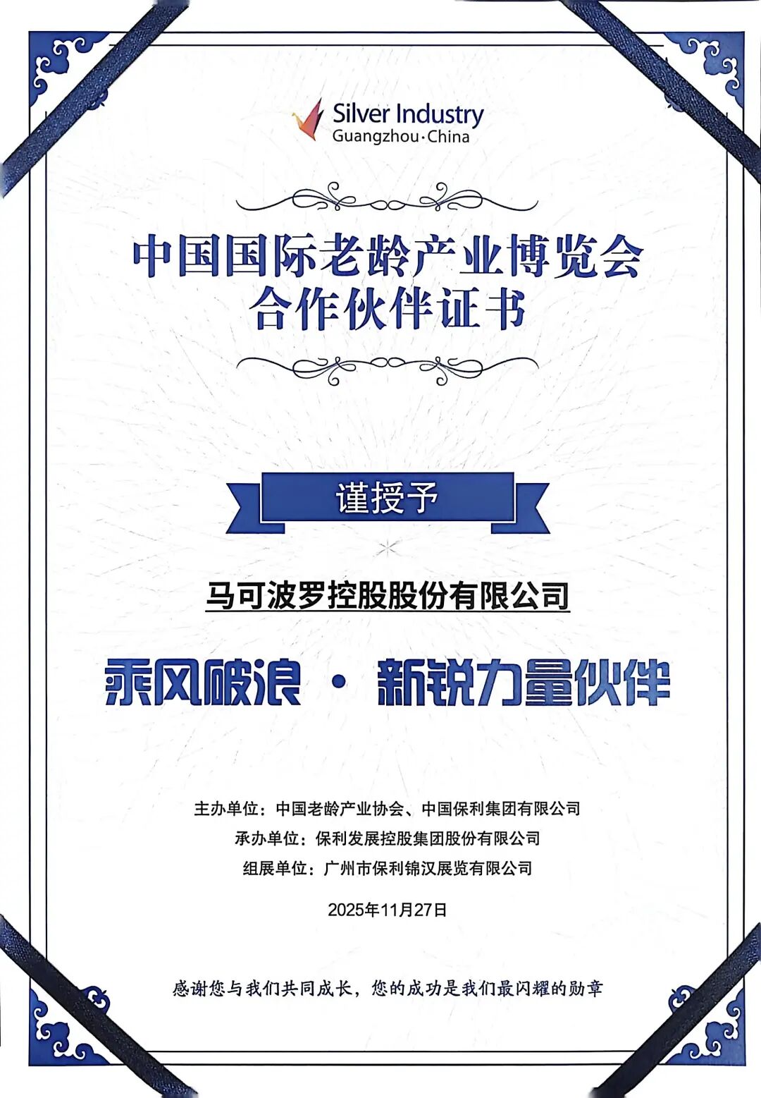 马可波罗控股获中国国际老龄产业博览会合作伙伴荣誉!