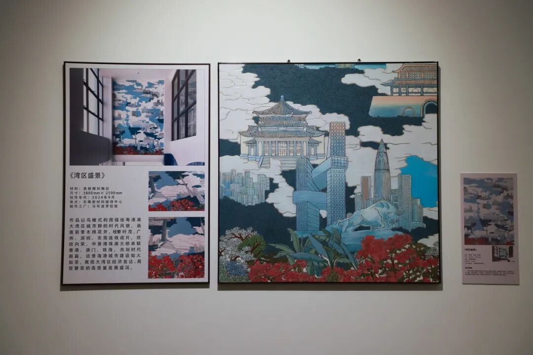 此次展览汇聚了来自全国各地的壁画艺术家代表性作品,其中七件入选展出的壁画作品由马可波罗文化陶瓷制作完成,《湾区盛景》与《台州印象》两幅壁画为马可波罗文化陶瓷团队原创设计并制作,获得国家级专业平台的高度认可,充分展现了马可波罗在壁画艺术创作与陶瓷工艺融合方面的创新实力。