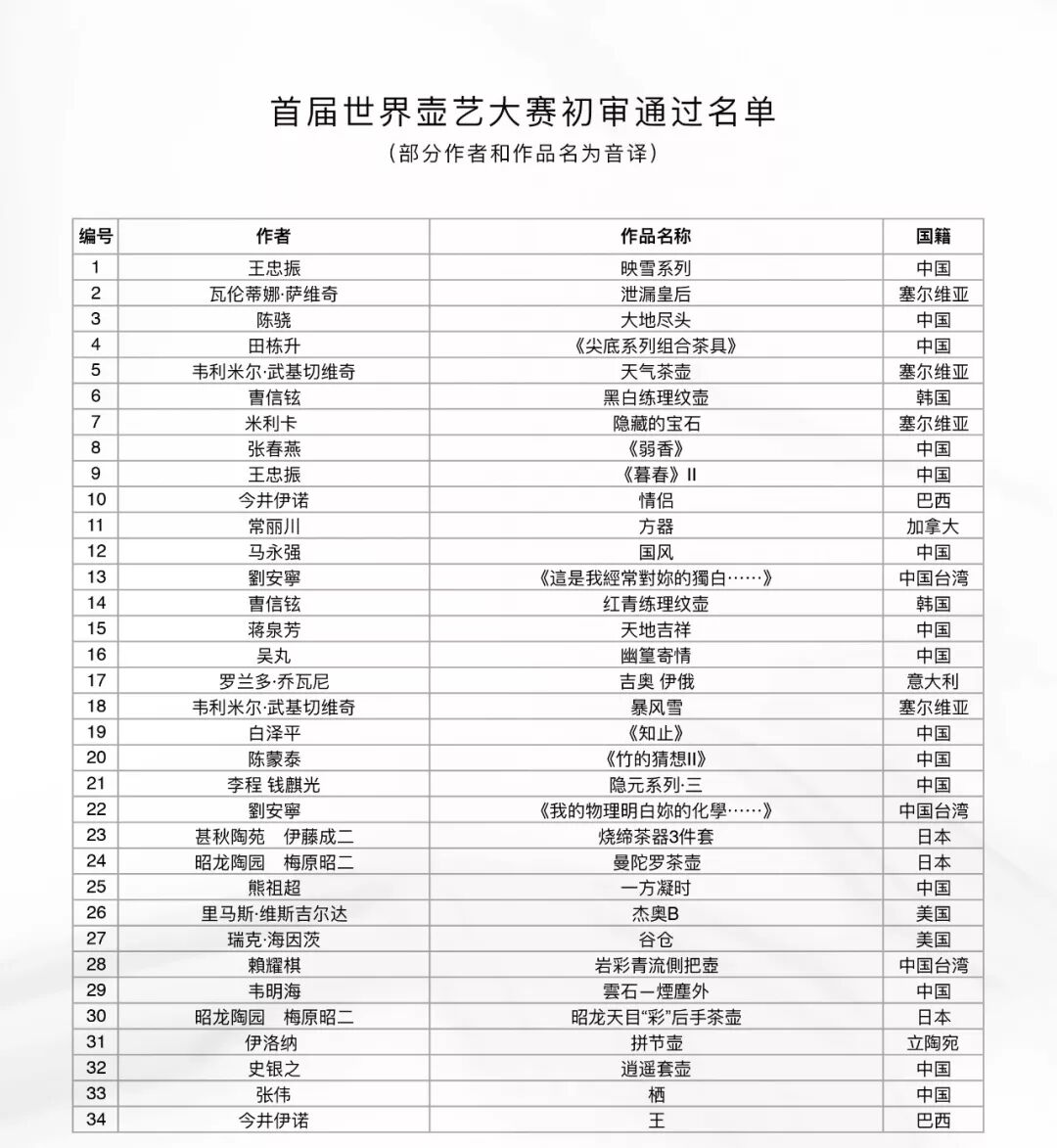 世界壶艺聚陶都——“首届世界壶艺大赛”入选复审名单公布!