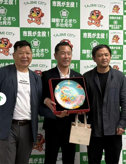 与美浓展组委会工作会谈现场日本多治见市市长高木贵行在市政厅热情接待了余剑峰、李超并举行了简短会谈。他首先代表政府欢迎景德镇陶瓷大学代表团,对景德镇市和景德镇陶瓷大学的卓越发展表示祝贺,特别是对参观2023瓷的旅程-景德镇国际陶瓷艺术双年展印象深刻。他在欢迎致辞中说这是日本东美浓地区政府出资邀请的继36年前景德镇陶瓷大学代表团(周国祯、吕品昌等)中日陶艺界、学界对美浓地区访问后的又一次官方主导的陶艺文化交流活动,意义非凡,期待双方能通过访问加强文化互动。代表团代为转交了景德镇市政府对多治见市政府来华参加 2025 年‘1819’ 景德镇国际陶瓷嘉年华的邀请并传达陶瓷大学校方欢迎日方届时再次访问景德镇陶瓷大学、参观2026景德镇国际陶瓷艺术双年展现场。期待多治见市政府和美浓地区能够积极参与此次活动,进一步增进双方在陶瓷文化、产业等方面的交流,为两地友好合作注入新活力。同时对景德镇市和陶瓷大学的邀请表示感谢,并表示将积极考虑相关安排,争取以此为契机,推动两地政府和高校间在陶瓷艺术领域开展更多务实交流。