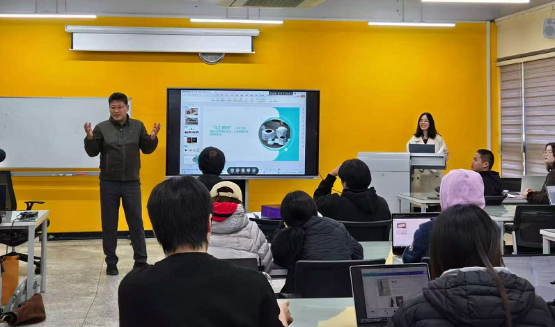 作为我院长期海外合作院校,韩国祥明大学在陶瓷艺术教育领域享有深厚积淀,其陶瓷系主任宋俊圭教授对本次交流授课给予充分支持与肯定。课程中,吴雪婷结合中、韩陶瓷文化特色,以 AI设计工具实操、文创 IP 孵化案例解析为核心,引导学生探索传统陶瓷工艺与人工智能技术的结合路径。从 AI 辅助陶瓷纹样设计、三维造型建模到文创产品市场定位,课程内容兼具理论深度与实践指导性,激发了韩国学生对跨文化文创设计的浓厚兴趣。