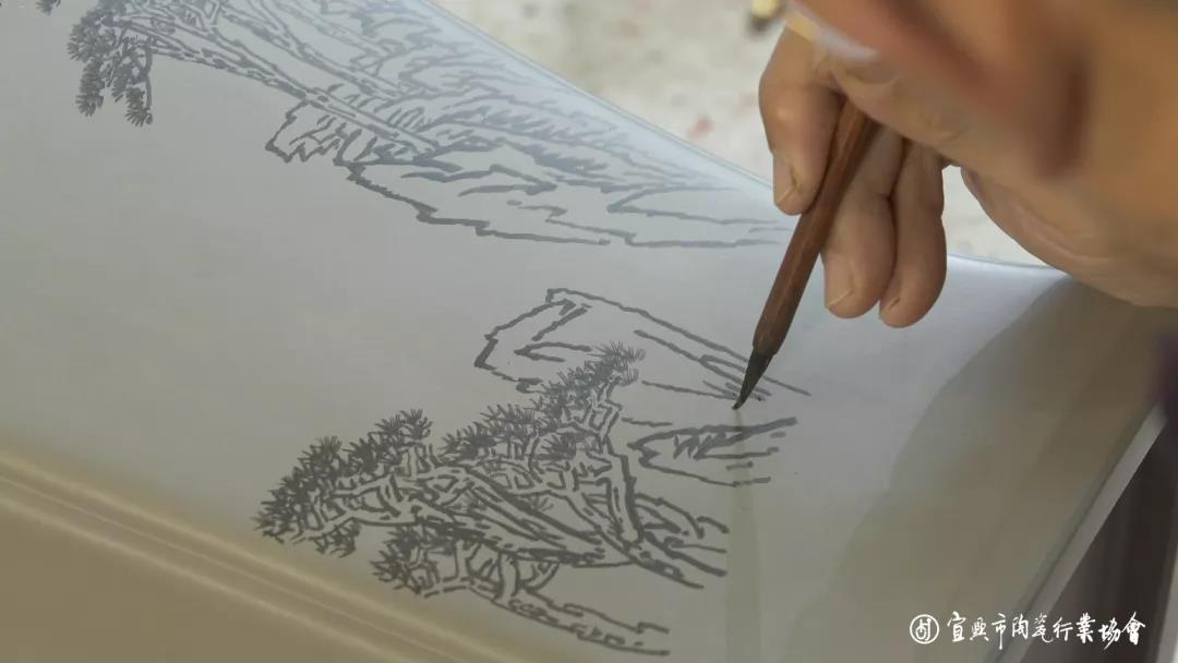 刻底子就是先用毛笔在紫砂器皿上先画好、写好,然后用刀再去表演、创造,用刀的深浅、轻重、缓急等手法来体现。