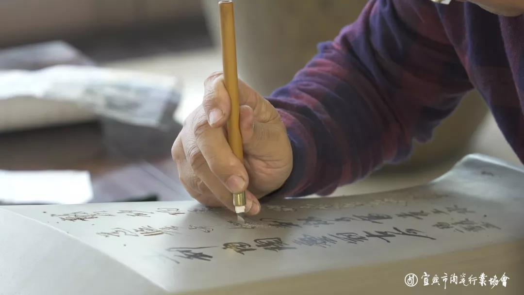 我1958年进的宜兴紫砂工艺厂,到现在已经从艺了60周年。我对紫砂的陶刻很有感情,也很有理解,陶刻的主要表现方法有两种:一种是刻底子,一种是空刻。