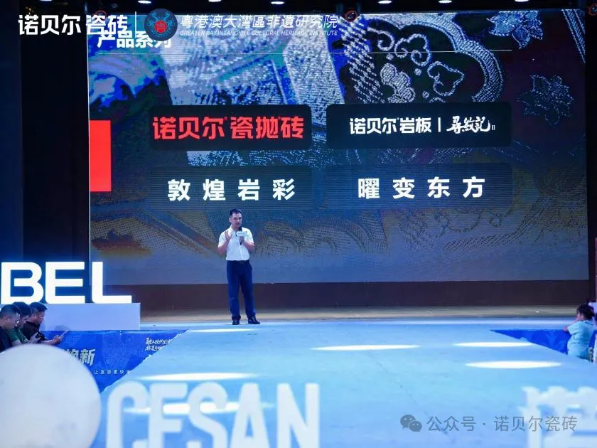 在品牌宣讲环节,诺贝尔瓷砖产品运营部经理叶利兵提出了以“非遗元素+现代设计+市场渠道”为核心的非遗商业转化模式。这一模式聚焦产品研发、品牌联名、文化传播三个维度,让非遗技艺真正融入现代生活场景。