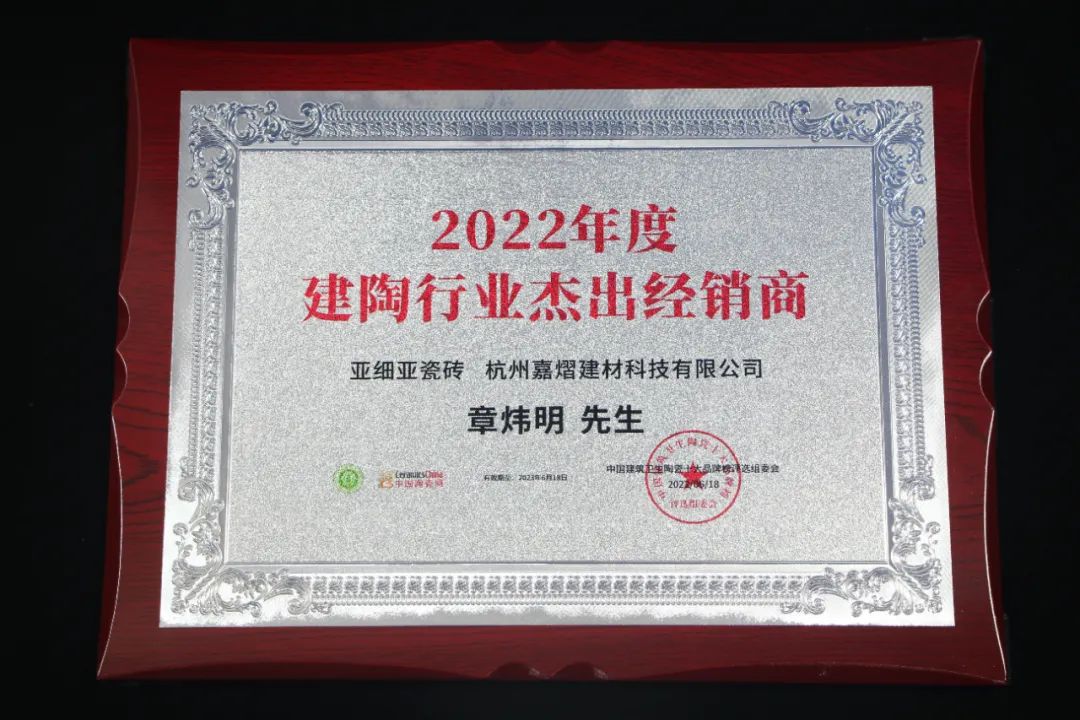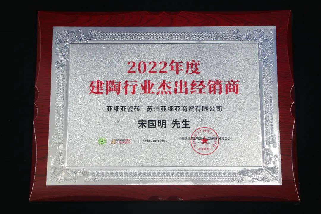 与此同时,亚细亚瓷砖苏州经销商-宋国明先生,亚细亚瓷砖杭州经销商-章炜明先生,获得2022年度“建陶行业杰出经销商”。