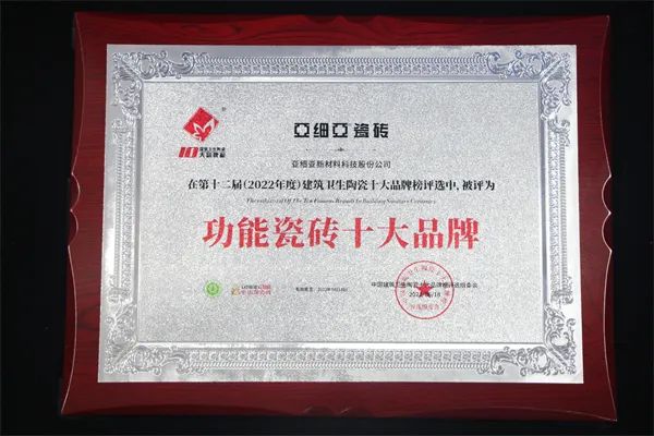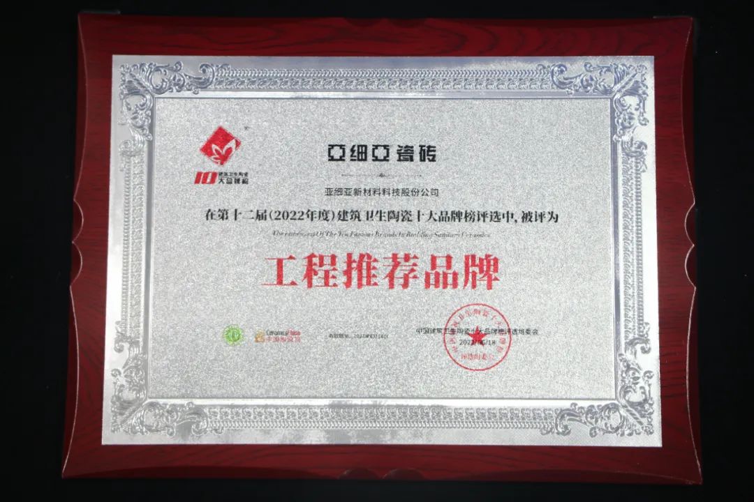 亚细亚瓷砖荣获“瓷砖十大品牌”、“功能瓷砖十大品牌”和“工程推荐品牌”三大殊荣。本次获奖不仅是对亚细亚品牌的认可,也是为品牌继续坚持高端品质注入无限动力!