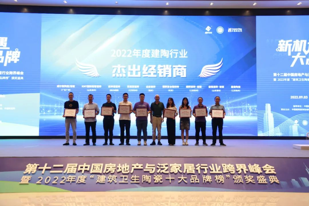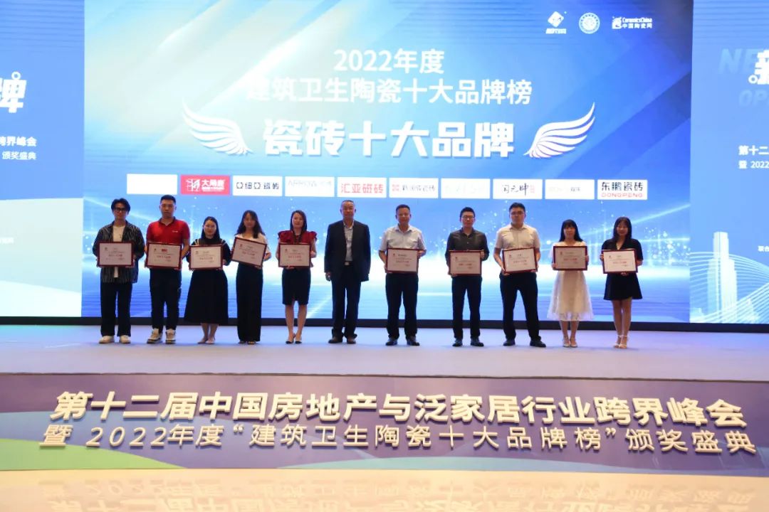 9月3日下午,由中国建筑协会主办的第十二届中国房地产与泛家居行业跨界峰会暨2022年度“建筑卫生陶瓷十大品牌榜”颁奖盛典于佛山樵山文化中心盛大举行。
