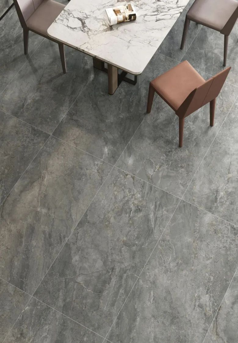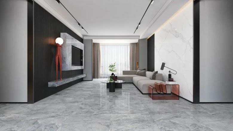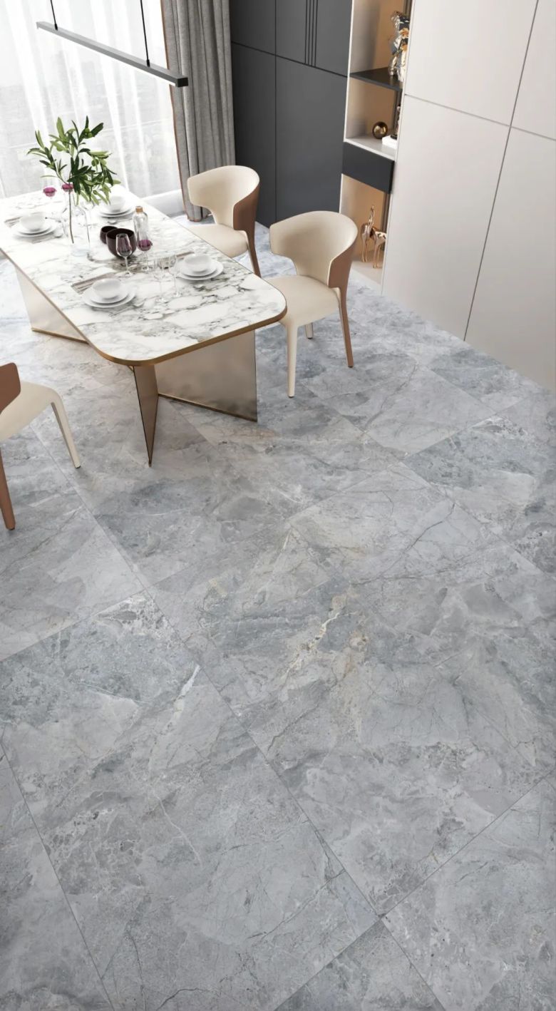 灰色系瓷砖是现代简约风格家居中最常见的,怎么搭配都不会出错。这款古巴海浪灰自带优雅体质,共有浅灰和深灰两种颜色,瓷砖表面带有灵动的纹理,视觉上更为轻松活跃,映射出积极阳光的生活态度,把清新简约展现的淋漓尽致。