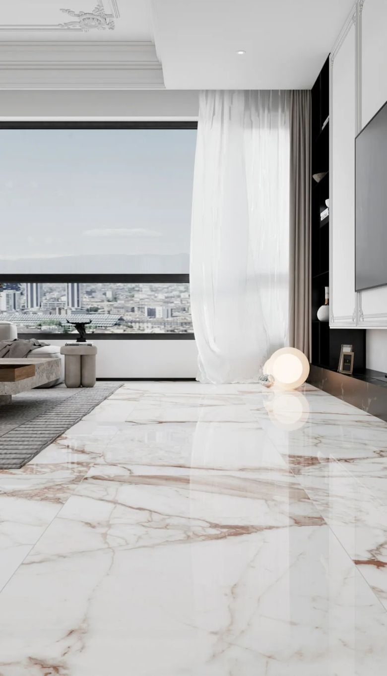塞浦路斯米黄以暖色为底色,温润的纹理如涓涓溪流,远看不花哨,近看有细节。750*1500黄金规格通铺,空间整体感更强,搭配低饱和色系软装,凸显客厅的层次感,与奶油风是“绝佳CP”