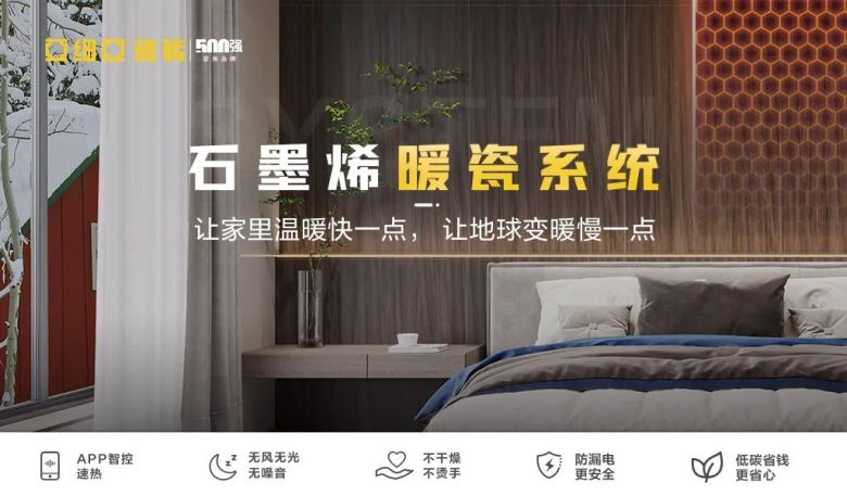 石墨烯暖瓷不仅可以打造美观耐用的健康墙地面,颠覆传统以烧煤烧气为主的供暖方式,更能实现以清洁能源供暖的模式,在减少碳排量的同时,满足温暖舒适人居的生活方式。