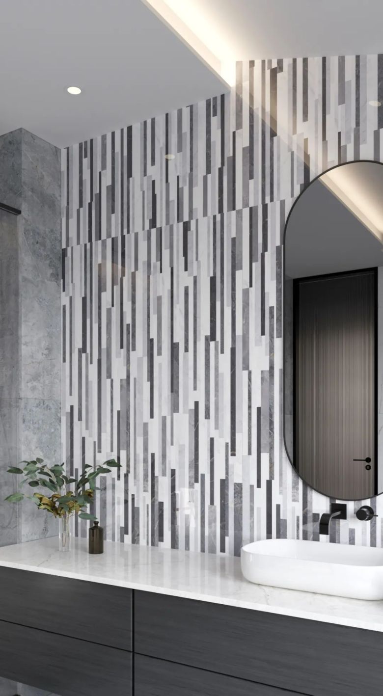 挪威雨帘有种原生的动态之美,使装饰空间展现出生命力。交错细腻的纹理与家居空间简洁的线条呼应,勾勒出满满精致优雅。这款挪威雨帘应用于浴室墙面地面,浑然一体,让空间有自然延伸感,清爽又干净。
