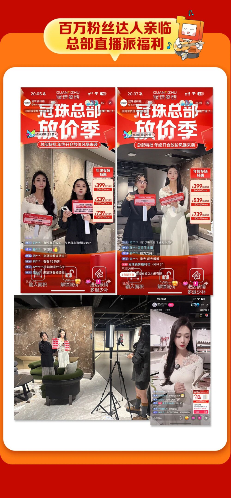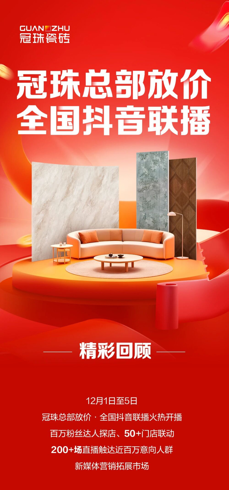 200+场抖音联播!冠珠瓷砖总部放价·全国抖音联播活动精彩回顾