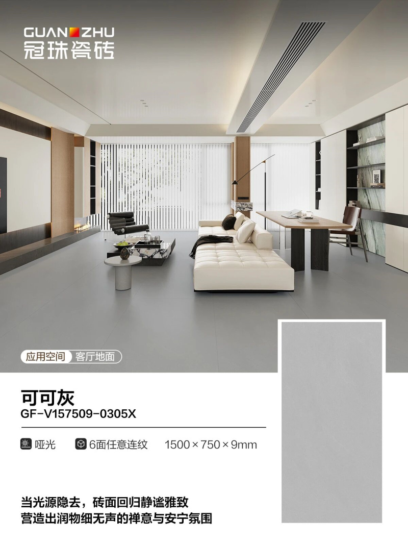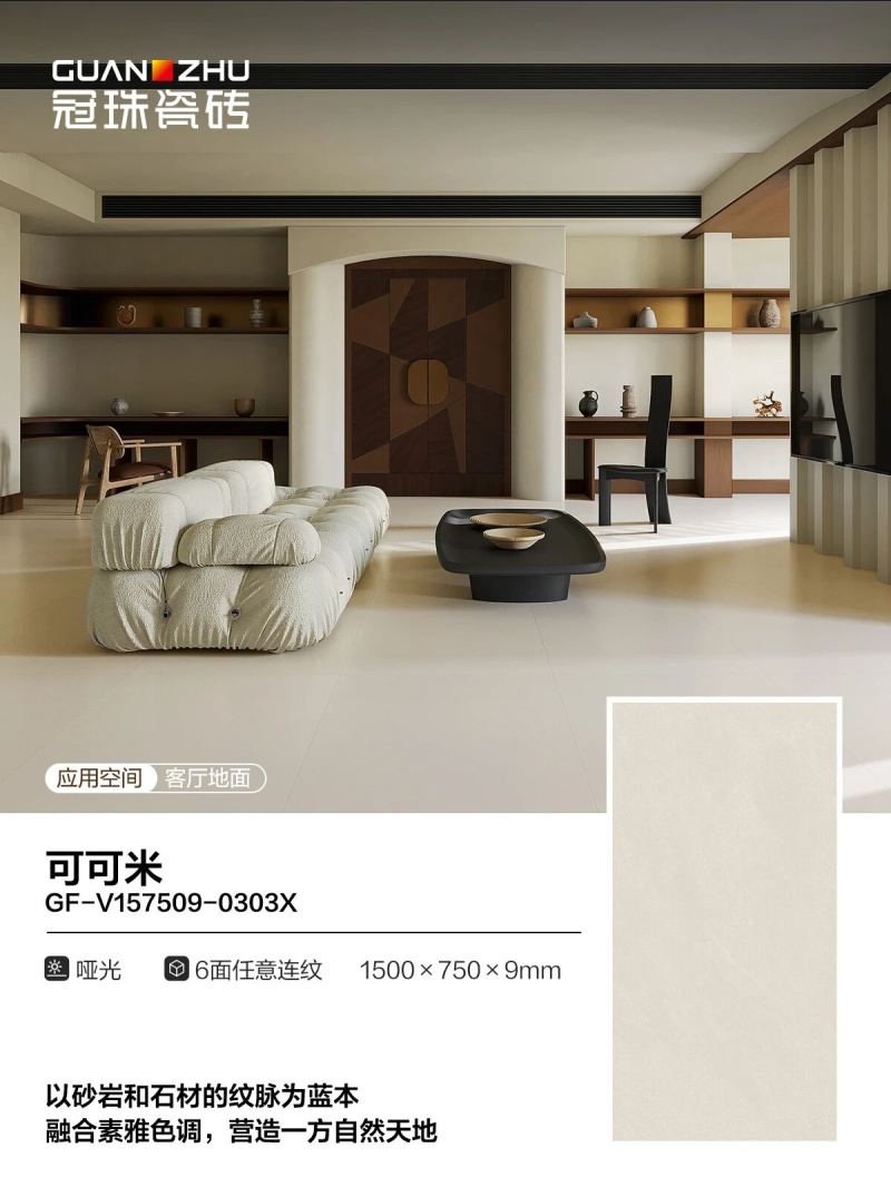通过珠光幻影技术,晶闪光泽与进口干粒细腻融合,砖面打造出如糖果般柔润光感,视觉效果柔和舒适。