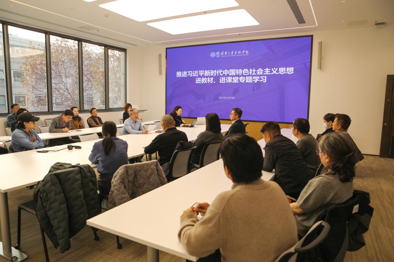 2025年12月11日下午,美术学院在A318会议室举办“推进习近平新时代中国特色社会主义思想进教材、进课堂”专题学习研讨会。会议由学院党委书记覃川主持,教务处副处长曹柳星、美术学院视觉传达设计系党支部书记陈楠教授分别做主题报告。会议围绕推进习近平新时代中国特色社会主义思想工作“进教材、进课堂、进头脑”这一核心议题展开深入研讨,旨在贯彻国家及学校关于教材建设的各项政策精神,推动“教材-课堂-成长”渠道联动,以高质量教材支撑高水平教学。副院长范寅良、各系教师代表、教学管理人员共50余人参会。