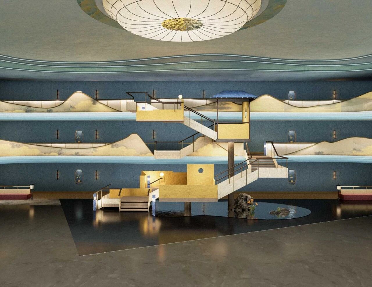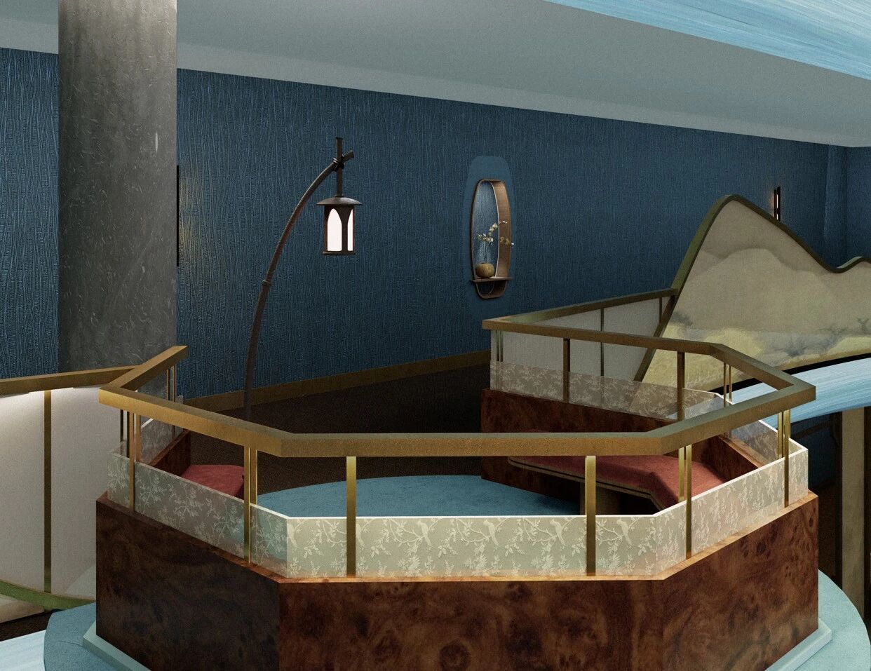 在这样一个全新的载体里,我们希望找到属于当代年轻设计者的表达方式——既来自东方文化,又能以现代设计语言让世界读懂。因此本作品以“逍遥游”为主题,探索当代东方美学在国际邮轮语境中的表达。