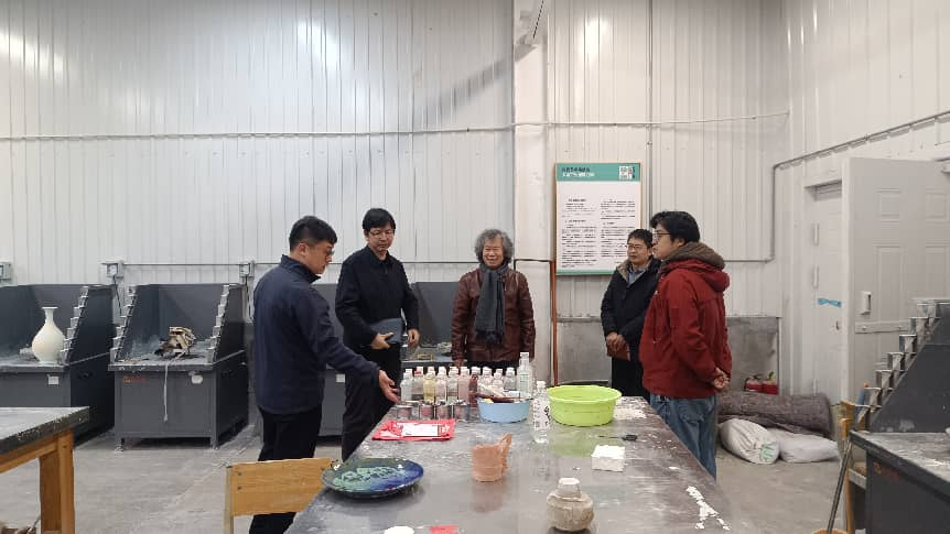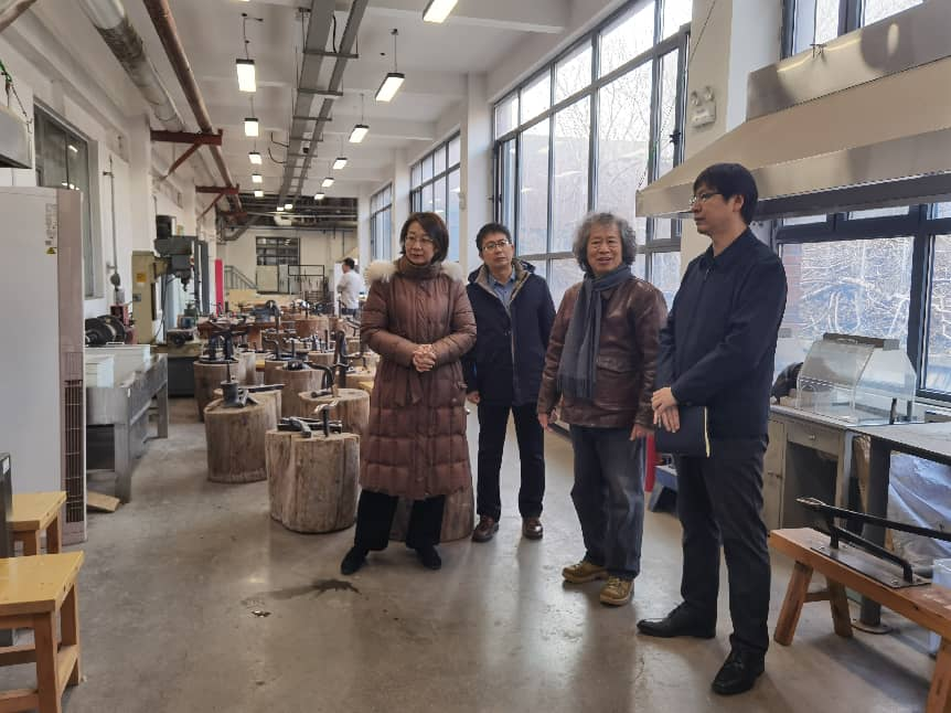 孔亮副院长一行深入手工艺实验室,实地考察学院教学运行情况。在实验室,孔亮仔细查看了陶瓷窑炉、漆艺荫房、金工吊机、首饰珐琅炉、玻璃热成型加工设备等教学设施的配置与使用情况,并观摩一线教学,围绕实践课程设置、工艺制作流程等与师生进行了亲切交谈。