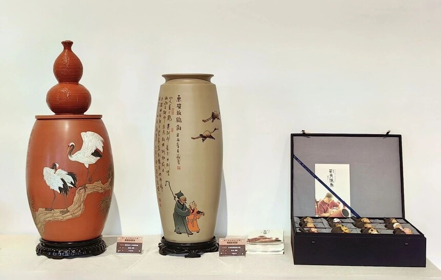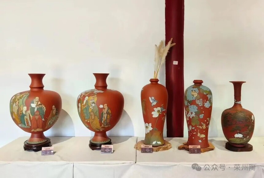 四川荣县选送的由荣县土陶创意园首席艺术家刘勇和丁玉蝶、谢晓笛、莫秀英、宋丽霞五位艺术家及学生代表共10件(套)“荣州陶”作品参加此次展览。近年来,荣县土陶创意园艺术家们不断传承与发展“荣州陶”,将传统技艺与新文人画、现代风格和“荣州三艺”等相结合,为“荣州陶”注入了新的活力,得到了业界的广泛认可。