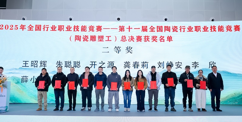 12月17日-25日,2025 年全国行业职业技能竞赛第十一届全国陶瓷行业职业技能竞赛总决赛成功落幕。我院教师吴俊卿荣获陶瓷产品设计师(现代生活陶艺)全国二等奖,李欣获得陶瓷雕塑工职工组全国二等奖。教师石越指导的陶艺256班学生张祎斐、工美243学生班张喆分获陶瓷装饰工(彩绘)学生组全国二等奖、三等奖。教师王森指导的雕塑243班赵舟琴获得陶瓷雕塑工学生组全国二等奖。