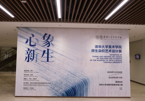 2025年12月26日,“心象·新生——清华大学美术学院师生染织艺术设计展”在建华楼(经管新楼)三层长廊正式开展。展览由清华大学美术学院党委书记覃川担任展览总监,清华大学美术学院院长吴琼担任学术主持,清华大学美术学院党委研究生工作组组长丁荭和副组长刘利平担任策展人,清华大学美术学院党委研究生工作组执行策划。展览时间从2025年12月26日延续至2026年4月10日。