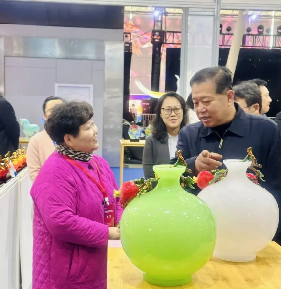 “匠心独运、艺韵流长、器载文化”,在全省工艺美术盛会上,我市工艺美术再度绽放光彩,淄博工艺美术企业、大师们携新品亮相,技艺与创意并重,每一件作品都承载着淄博文化的独特韵味,赢得了广泛好评,再次彰显了淄博工美的卓越风采。