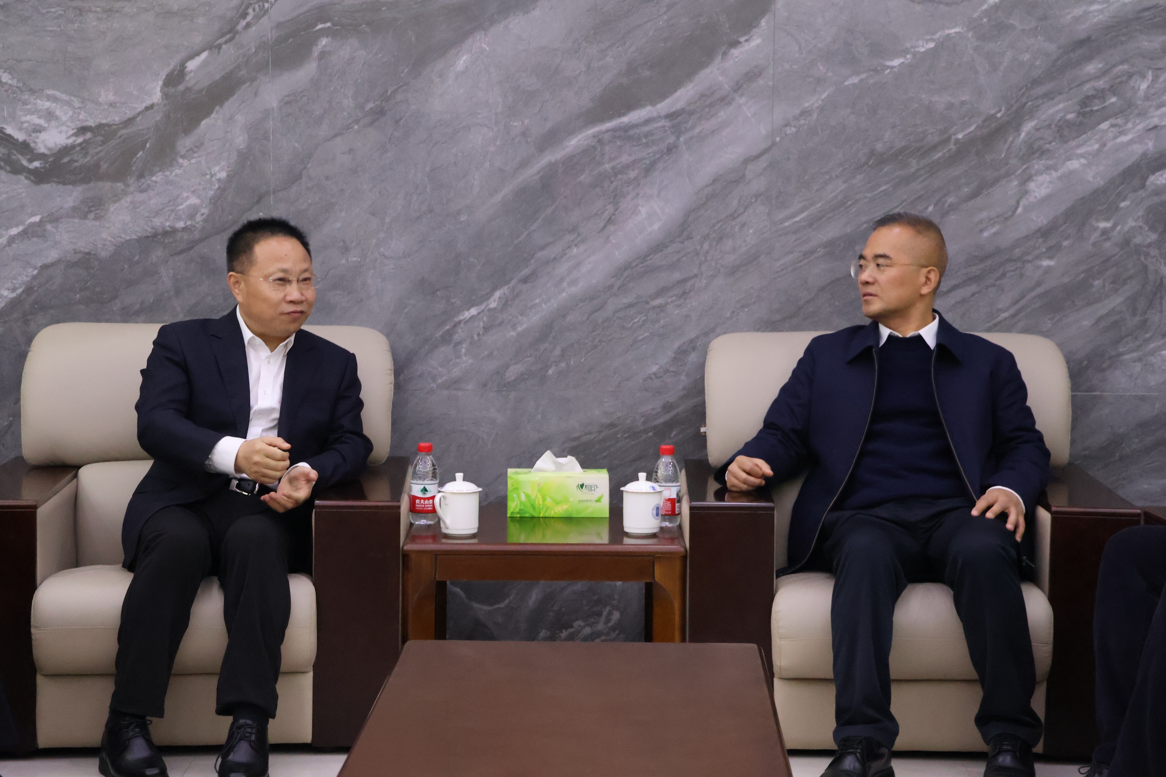 签约仪式前,蒲守智与李思林进行交流,李思林一行还参观了我校博物馆。