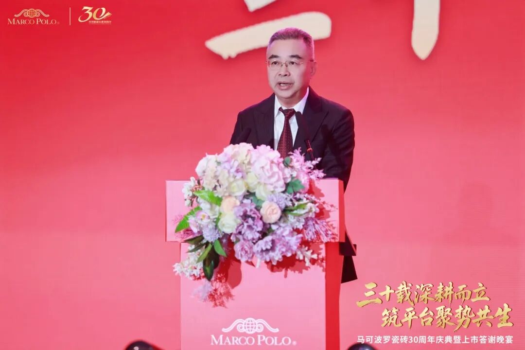 东莞市工商联主席、马可波罗控股董事长黄建平作主题演讲表示,三十载栉风沐雨,三十载深耕而立,过往的成绩离不开全体马可波罗人的砥砺奋斗、信任坚守和各界朋友的鼎力支持。展望未来30年,马可波罗将以平台为桥、以势能为翼、以共生为道,致力于打造一家值得长期信赖、具有国际影响力的优秀上市公司,持续为行业进步、区域经济发展,以及“中国制造”向“中国创造”的转型升级贡献力量。