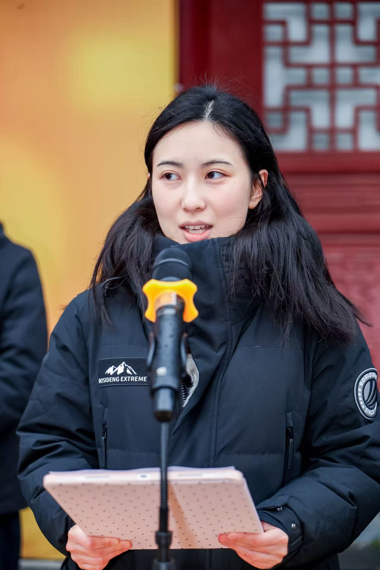 清华大学美术学院参展学生代表国佳洋发言,感谢桂阳县委、县政府的支持,分享艺术源于生活、服务社会的感悟,并期待以专业能力助力当地文化发展。