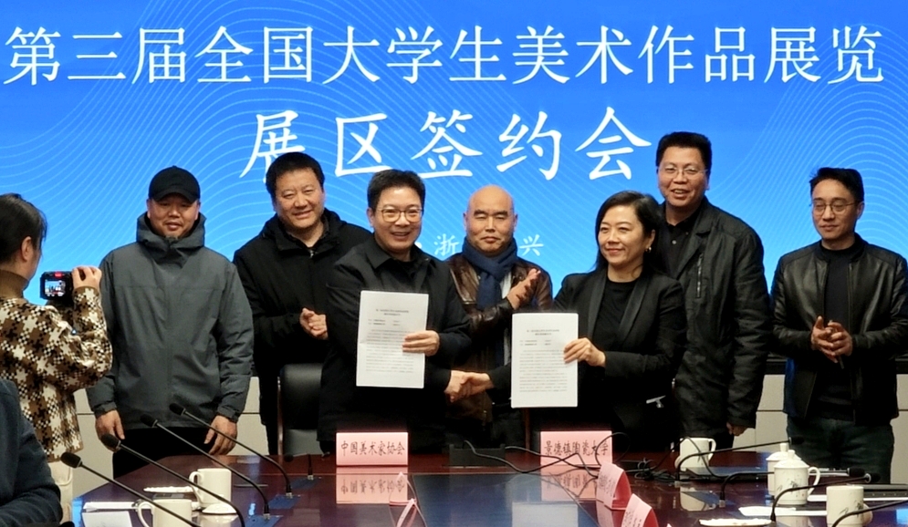 本网讯(美术学院)1月30日,全国大学生美术作品展展区签约仪式在浙江嘉兴红船干部学院举行,我校获“全国大学生美术作品展工艺美术·陶瓷艺术展区”的举办权,景德镇陶瓷大学副校长张婧婧,中国美术家协会公共艺术委员会主任、江西省美术家协会主席吕品昌及景德镇陶瓷大学美术学院、博物馆等相关负责人出席签约仪式。
