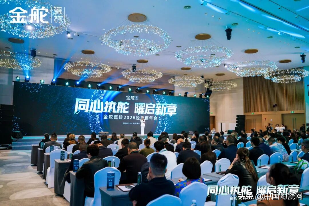 风起之时,我们曾并肩破局;潮涌之际,我们当同心执舵。2025年,镜界之下,全域突破的足迹历历在目;2026年,幻影之上,向美绽放的蓝图执笔共绘。当行业变革浪潮澎湃而至,当消费复苏曙光逐渐清晰,唯有携手同心,方能执稳航舵,穿越周期。1月16日,以“同心执舵·曜启新章”为主题的金舵瓷砖2026经销商年会在佛山圆满举行。金舵瓷砖营销管理团队与来自全国各地的经销商伙伴齐聚一堂,共同回顾破局而上的2025年,共谋2026年高质量发展的崭新路径,携手开启品牌价值跃升的新篇章。