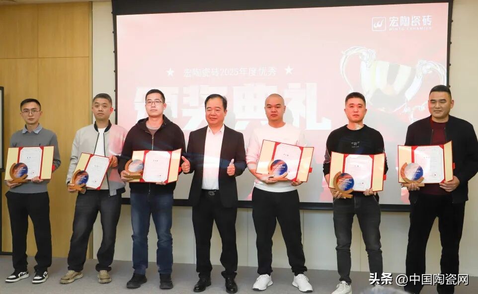 时序更替,华章日新;初心如磐,奋楫笃行。2月3日,瓷砖十大品牌宏陶瓷砖隆重召开2025年度总结会议。会议全面回顾了过去一年的发展成果,正式发布了2026年战略规划与首波营销战役,系统部署了新一年的发展方向。总经理梁慧才、副总经理罗勇、销售副总经理庞永江、许恩杰、高美等公司管理层及全体员工齐聚一堂,凝聚共识,共绘蓝图。