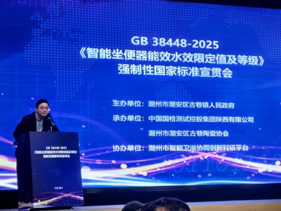 为深入贯彻《国家标准化发展纲要》及国家推动大规模设备更新与消费品以旧换新相关政策,2026年1月30日,GB 38448-2025《智能坐便器能效水效限定值及等级》强制性国家标准宣贯会在潮州市潮安区古巷镇文化服务中心成功举行。本次会议由潮州市潮安区古巷镇人民政府主办,中国国检测试控股集团陕西有限公司与潮州市潮安区古巷陶瓷协会共同承办,潮州市智能卫浴协同创新科研平台协办。会议由张波主持。