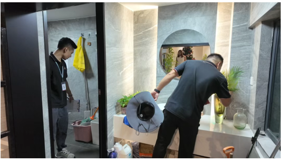 楼顶、展厅旁是杂物较多的地方,我们对各种积水容器、如建筑材料、废弃瓶罐、塑料布等进行清理。