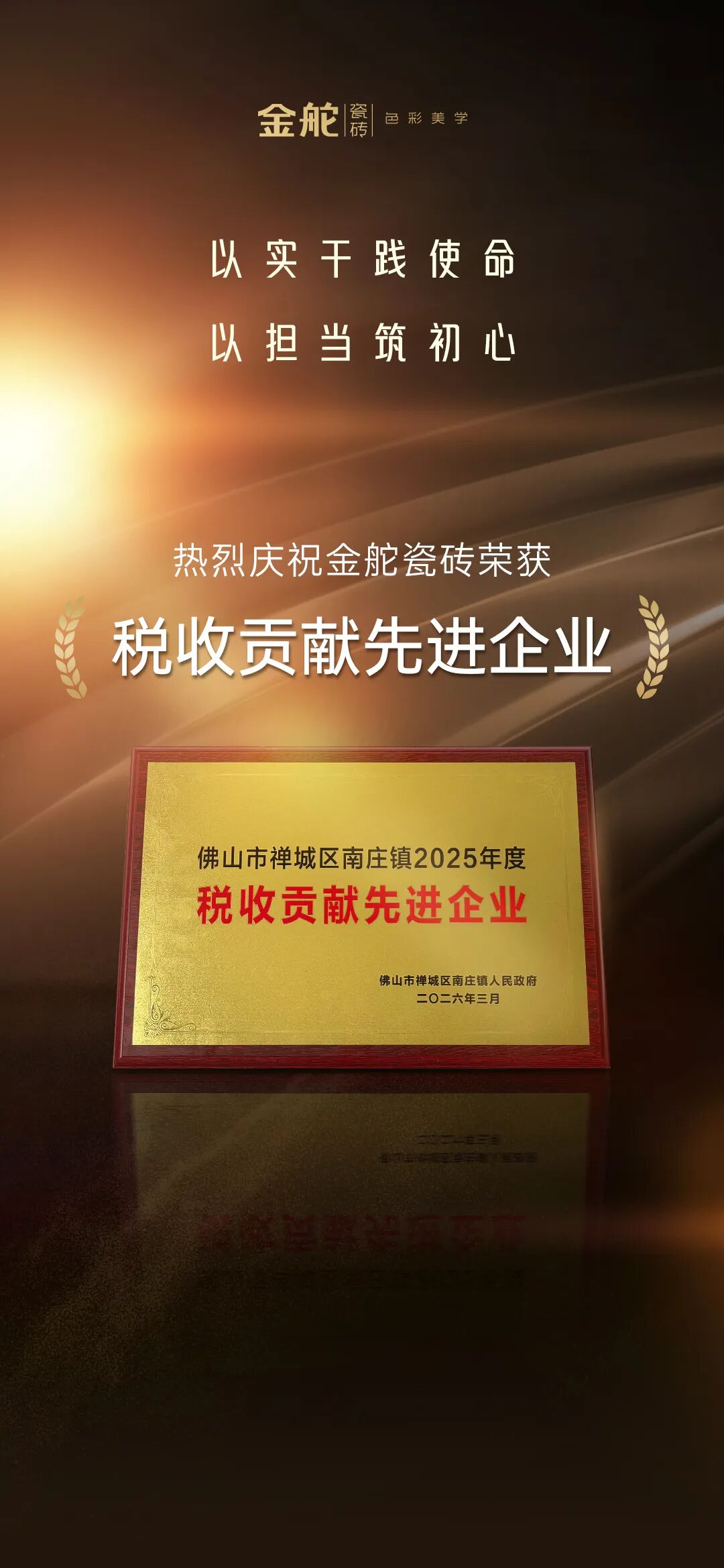 3月9日,以“同舟同心,向上向新”为主题的2026年企业家座谈会在南庄镇召开。作为南庄本土成长的建陶品牌,金舵瓷砖凭借稳健的经营业绩、突出的税收贡献,荣获佛山市禅城区南庄镇2025年度“税收贡献先进企业”。