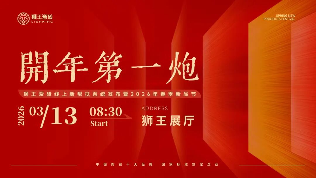 3月13日,狮王瓷砖“开年第一炮——线上新帮扶系统发布暨2026年春季新品节”在总部展厅盛大举行。面对2025年陶瓷行业深度调整、市场寒意未消的复杂环境,狮王瓷砖以一场集战略发布、新品亮相、实战赋能、情谊共聚于一体的行业盛会,为2026年终端破局发展定下流量赋能、价值制胜的核心基调。